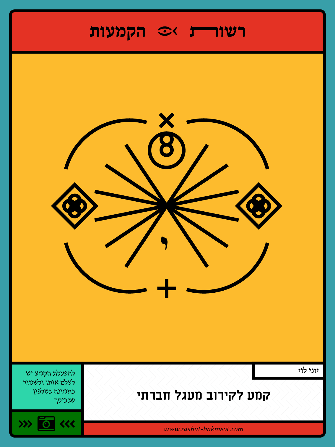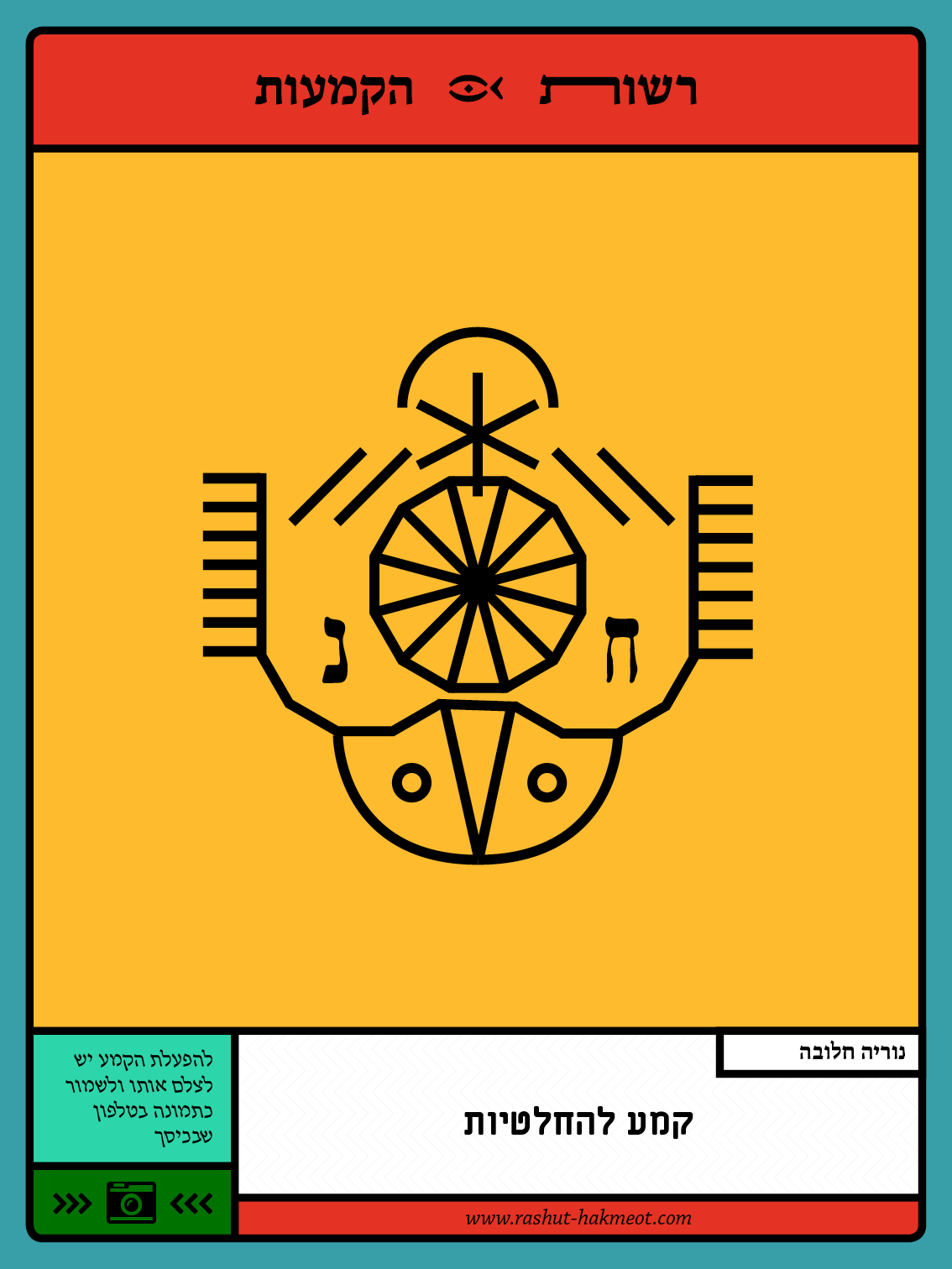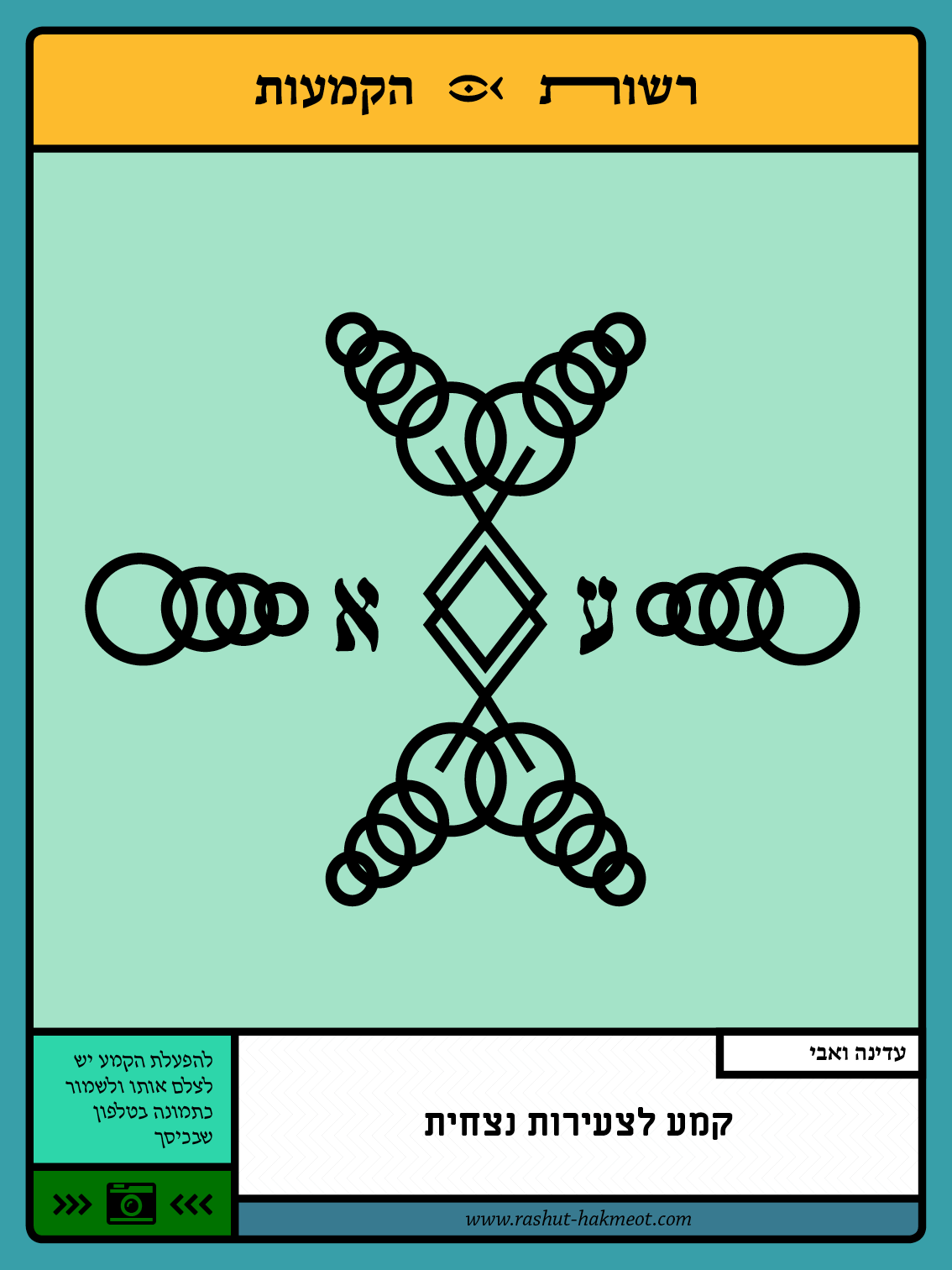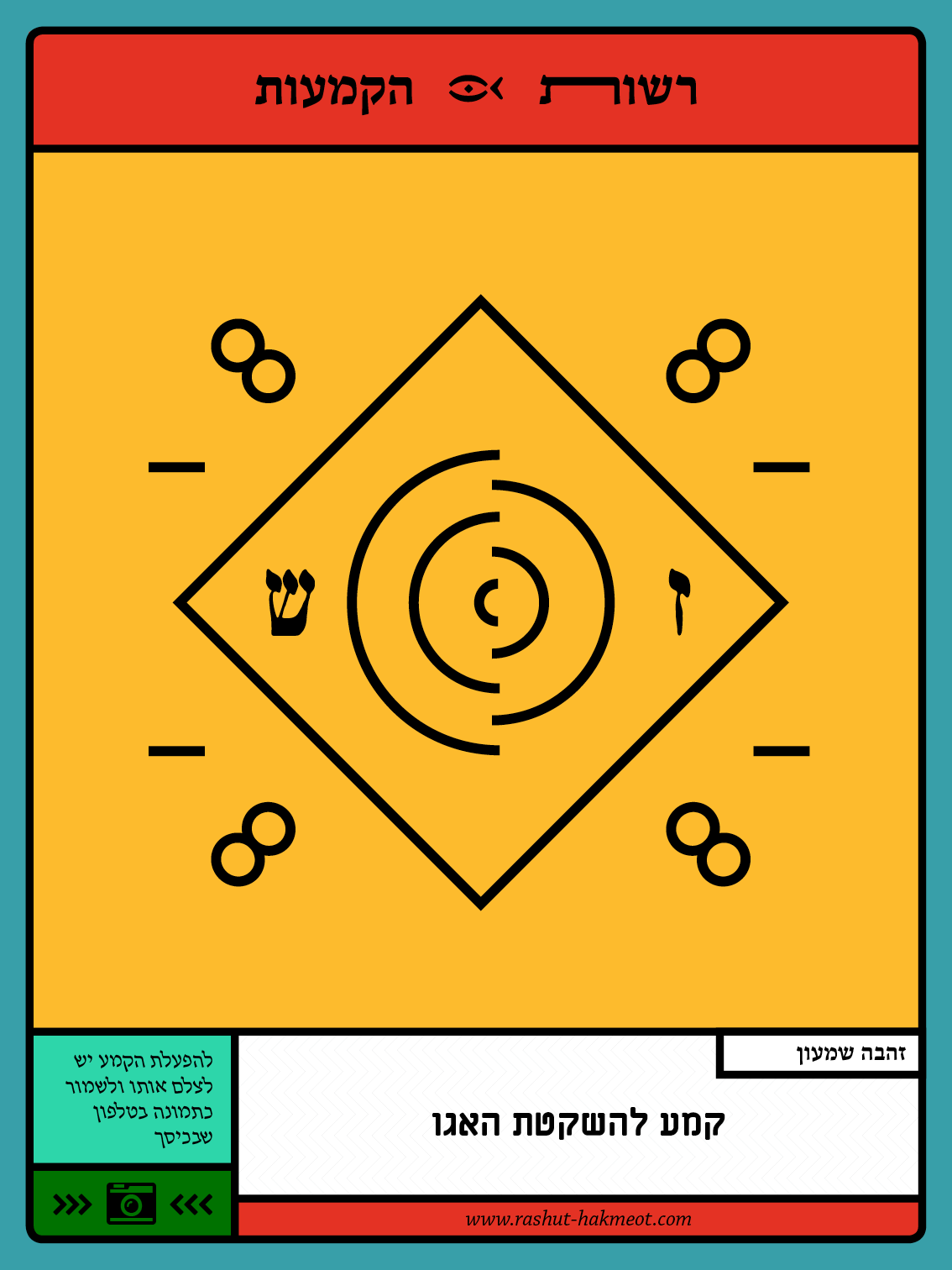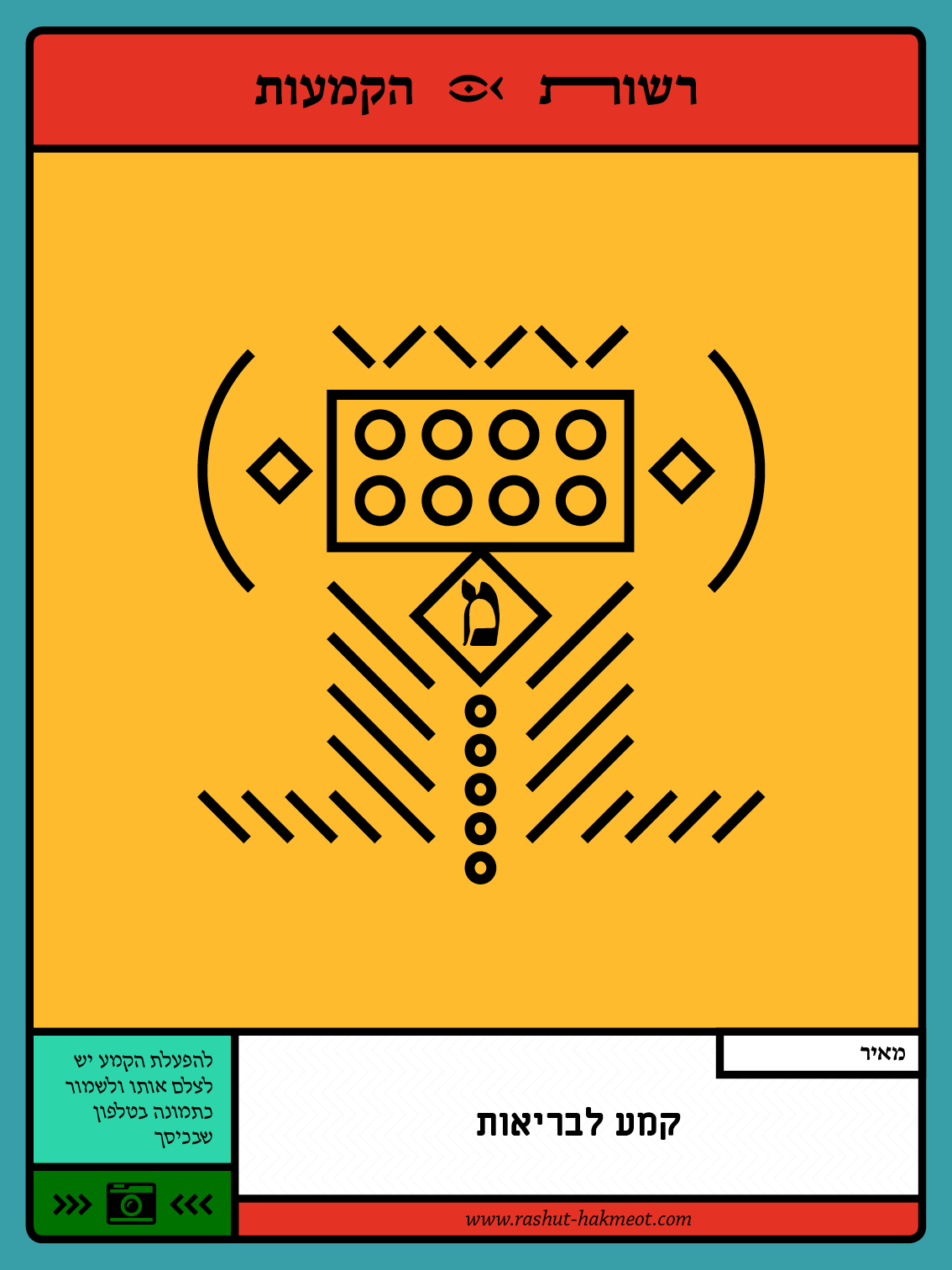קמעות אישיים שעוצבו במקום, אחרי ריאיון קצר, בו בוררו נקודות הכאב או הבעיה שעל הקמע לפתור. הודגר שיש לבחור בבעיות קטנות (לא שלום עולמי) ואין שום יכולת לקמעות כנגד חתולים. הקמעות נעשו במסגרת אירוע "סיפור עם" בבית אבי חי