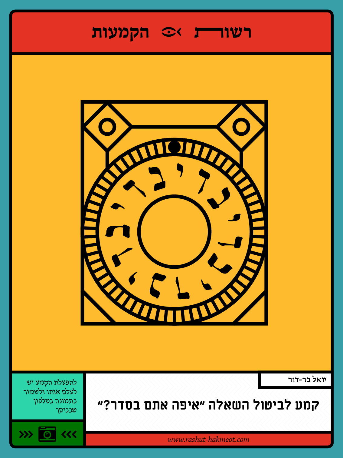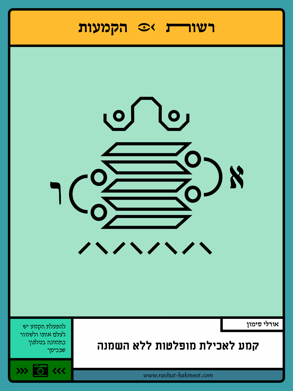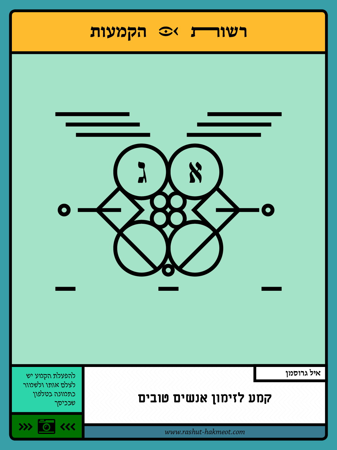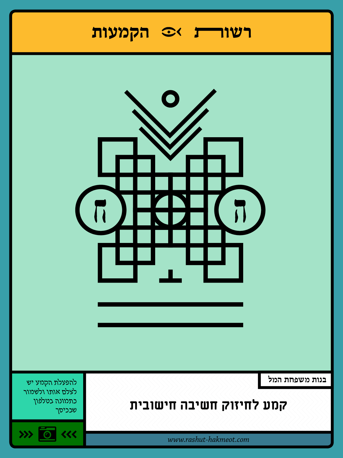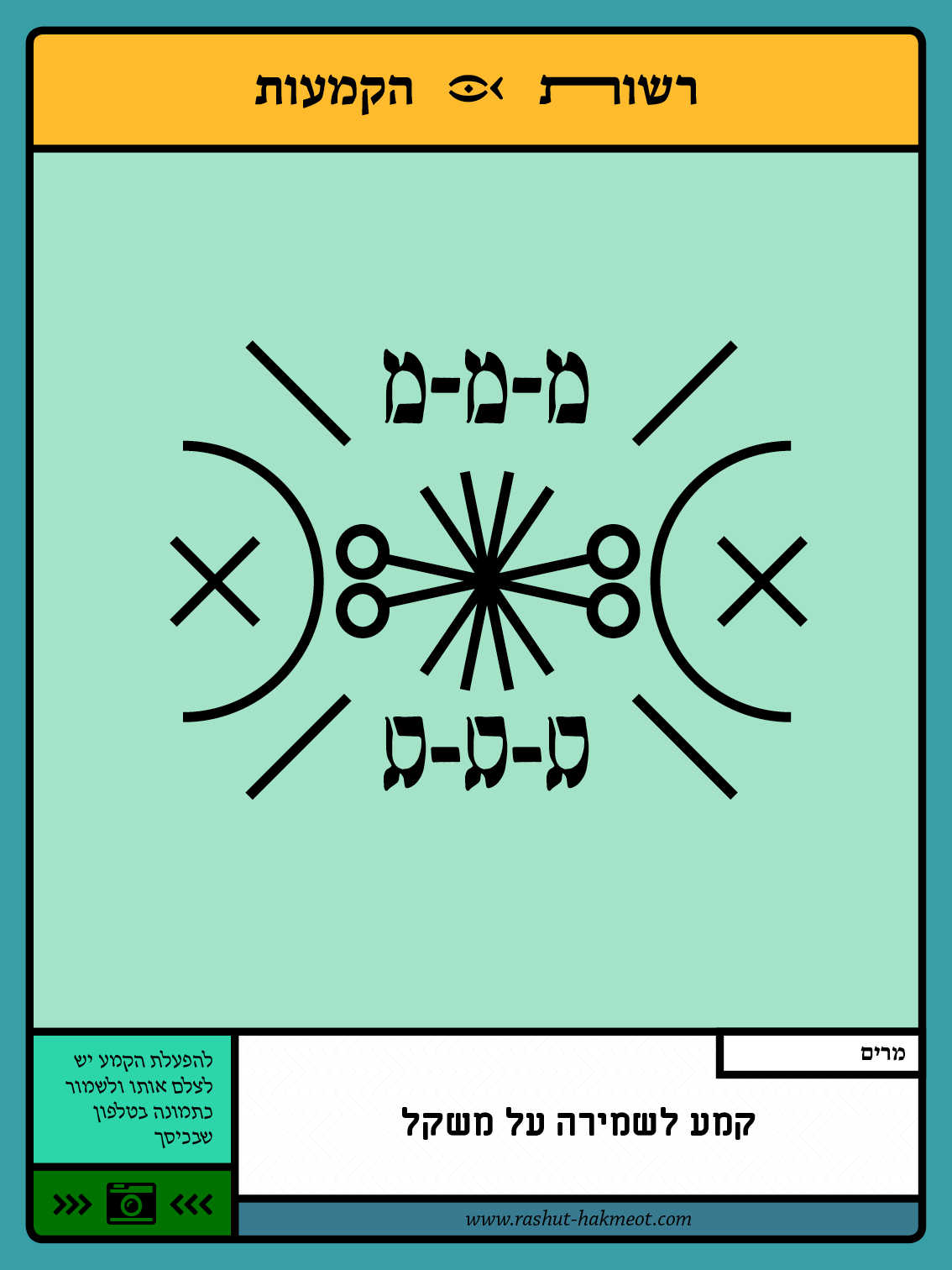 קמעות אישיים שעוצבו במקום, אחרי ריאיון קצר, בו בוררו נקודות הכאב או הבעיה שעל הקמע לפתור. הודגר שיש לבחור בבעיות קטנות (לא שלום עולמי) ואין שום יכולת לקמעות כנגד חתולים. הקמעות נעשו במסגרת אירוע "סיפור עם" בבית אבי חי