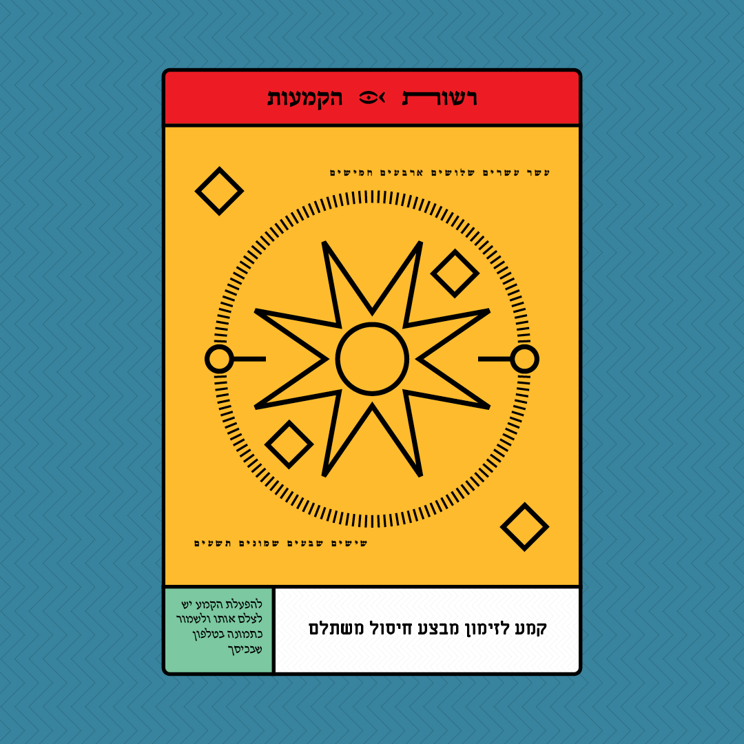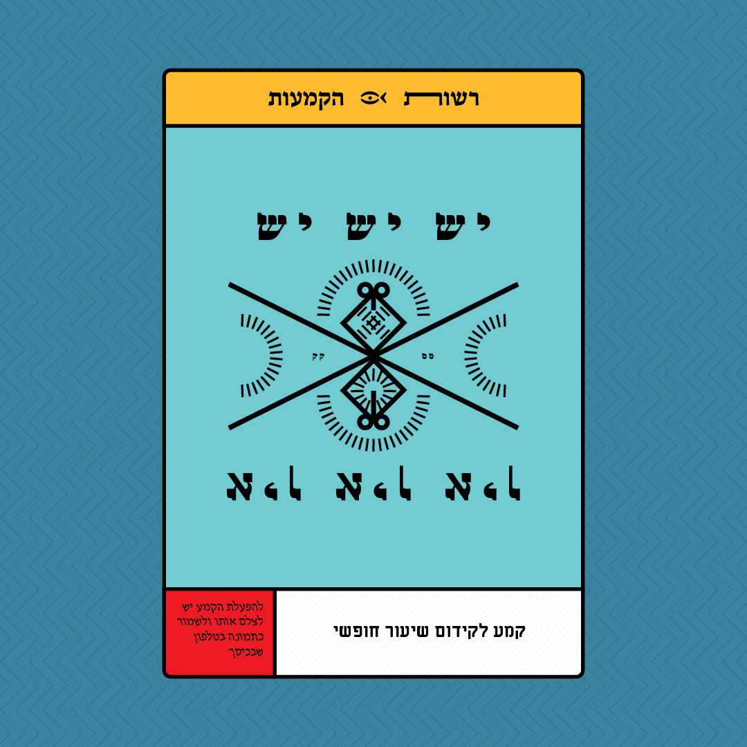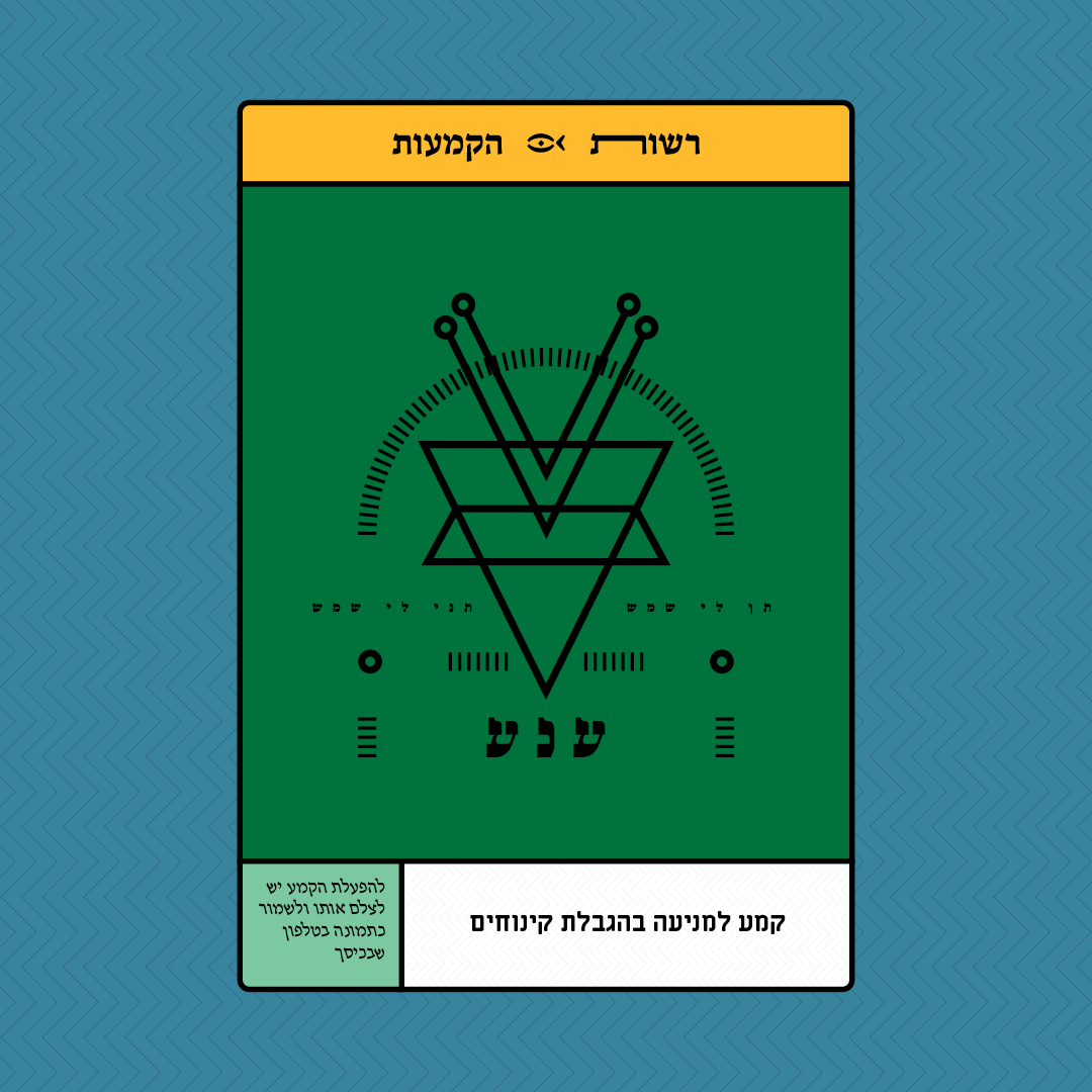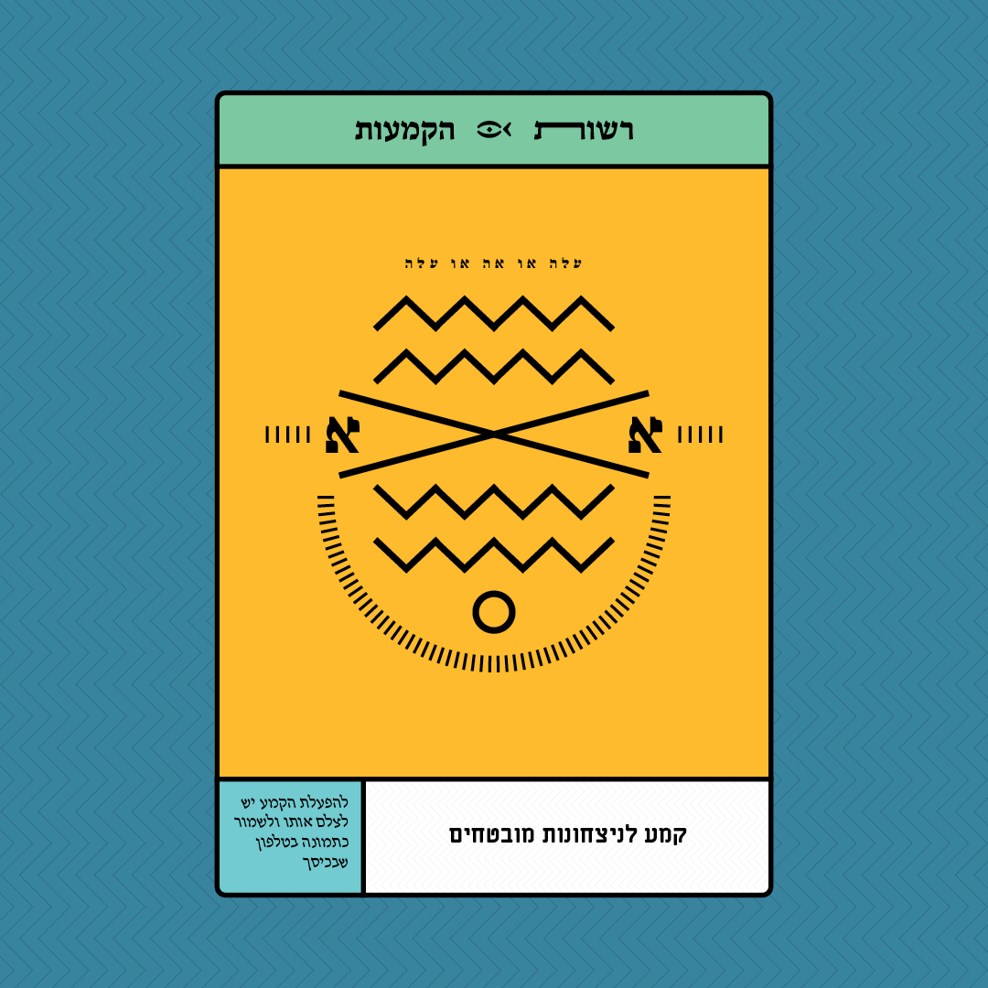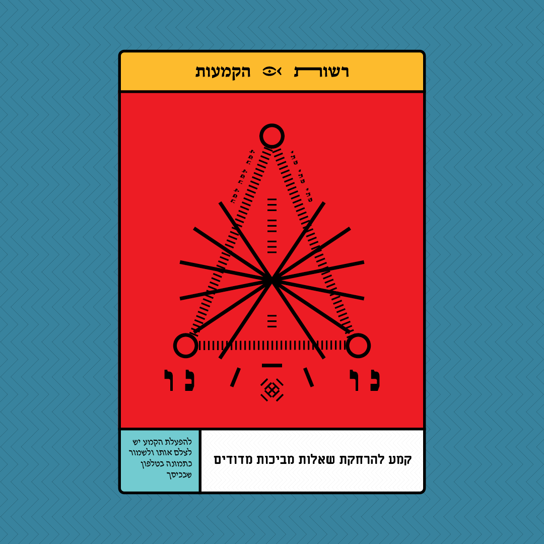 שאלון אינטראקטיבי להתאמת קמע אישי. הממשק יחולל את הקמע שמתאים לכם בעקבות סדרת שאלות כגון מה החולשה הכי גדולה שלך? והאם אתם טיפוסים של בוקר או ערב? העבודה נעשתה לתערוכה סודות, אגף הנוער מוזיאון ישראל ירושלים 2022