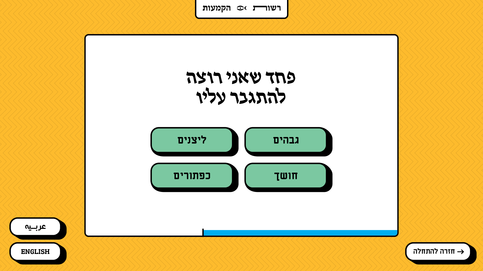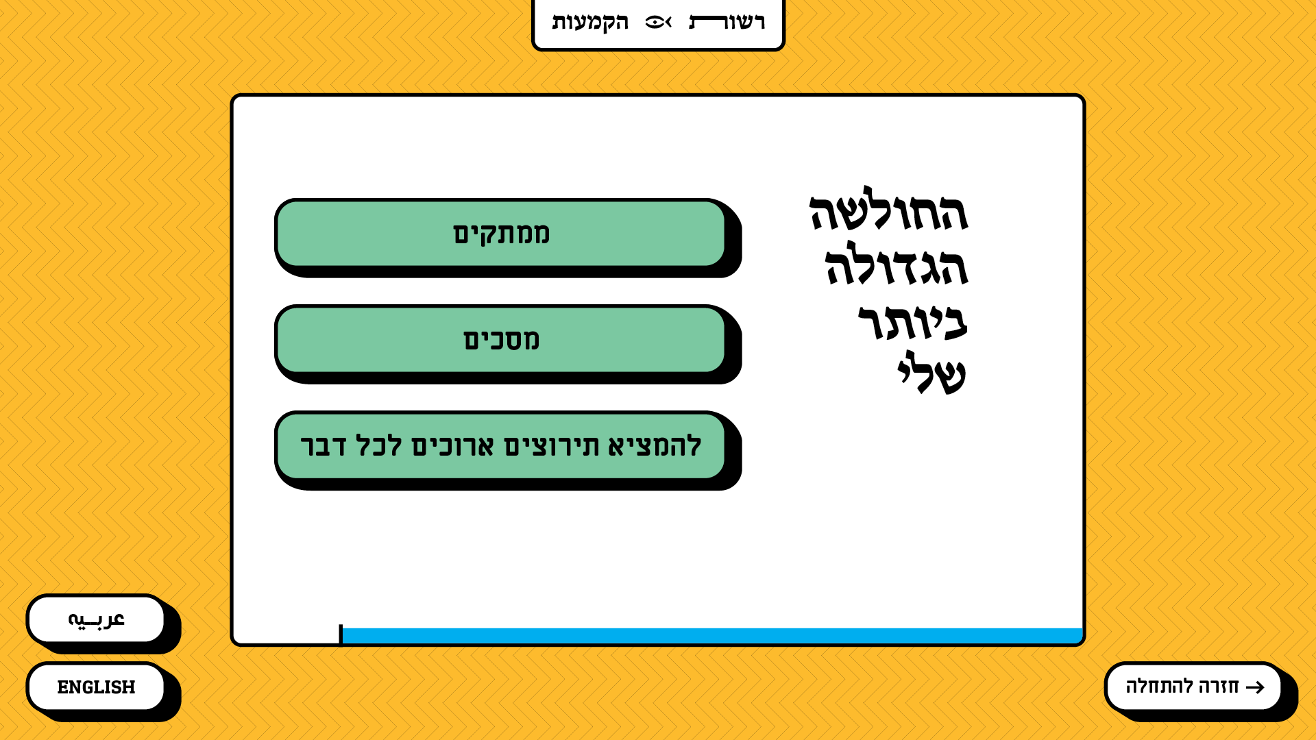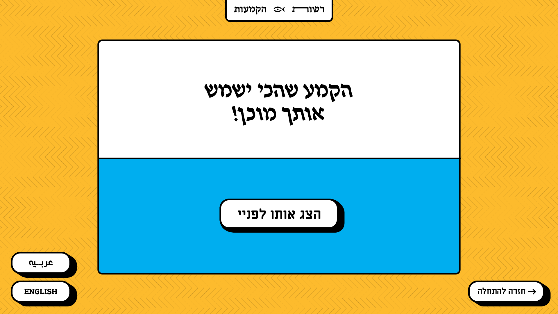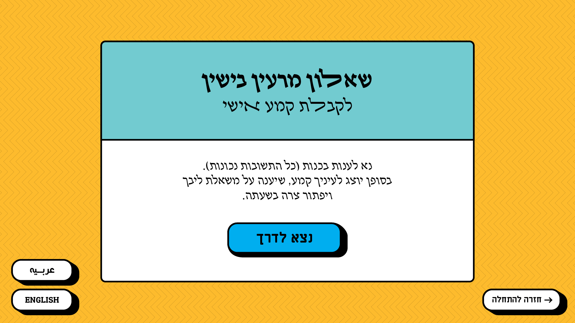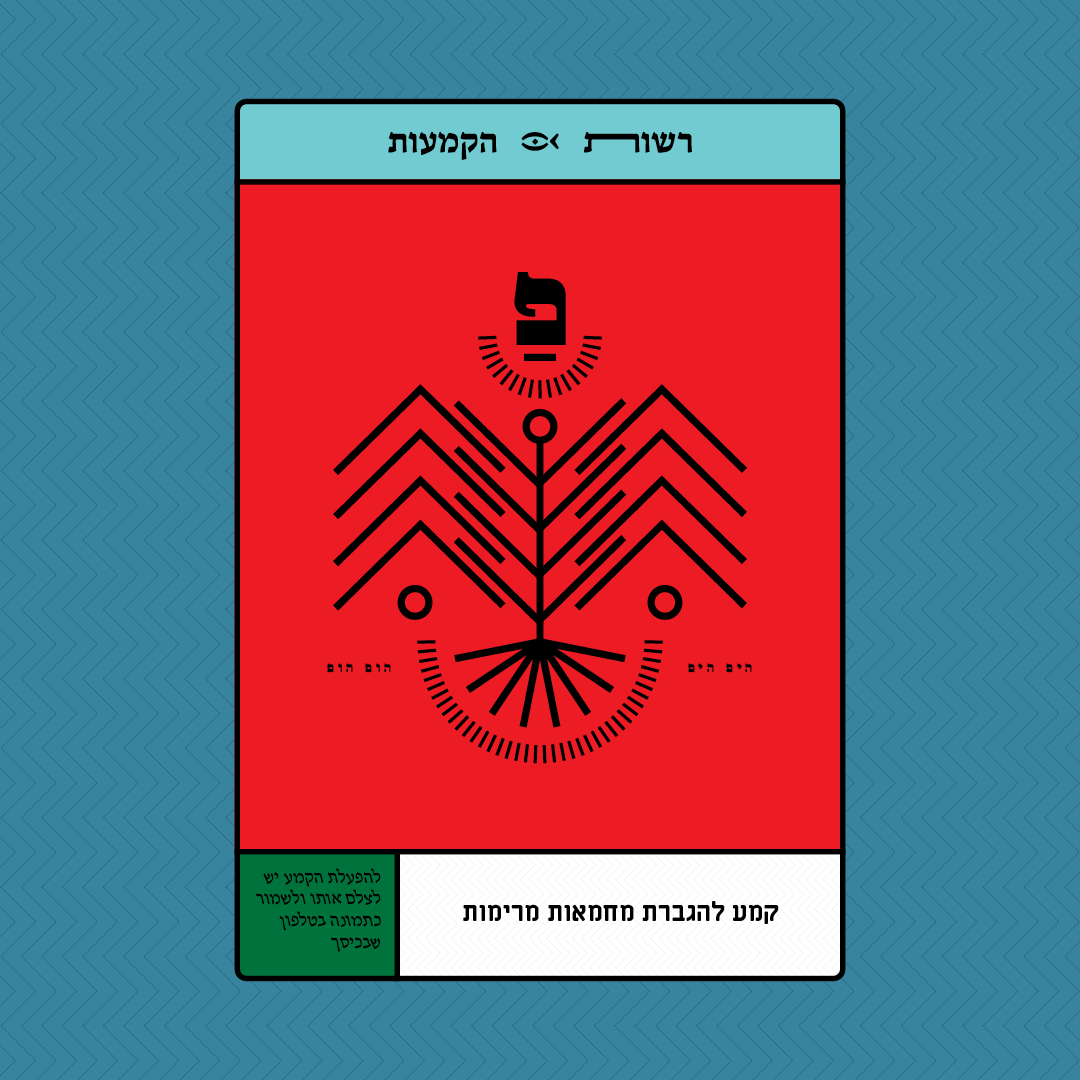שאלון אינטראקטיבי להתאמת קמע אישי. הממשק יחולל את הקמע שמתאים לכם בעקבות סדרת שאלות כגון מה החולשה הכי גדולה שלך? והאם אתם טיפוסים של בוקר או ערב? העבודה נעשתה לתערוכה סודות, אגף הנוער מוזיאון ישראל ירושלים 2022